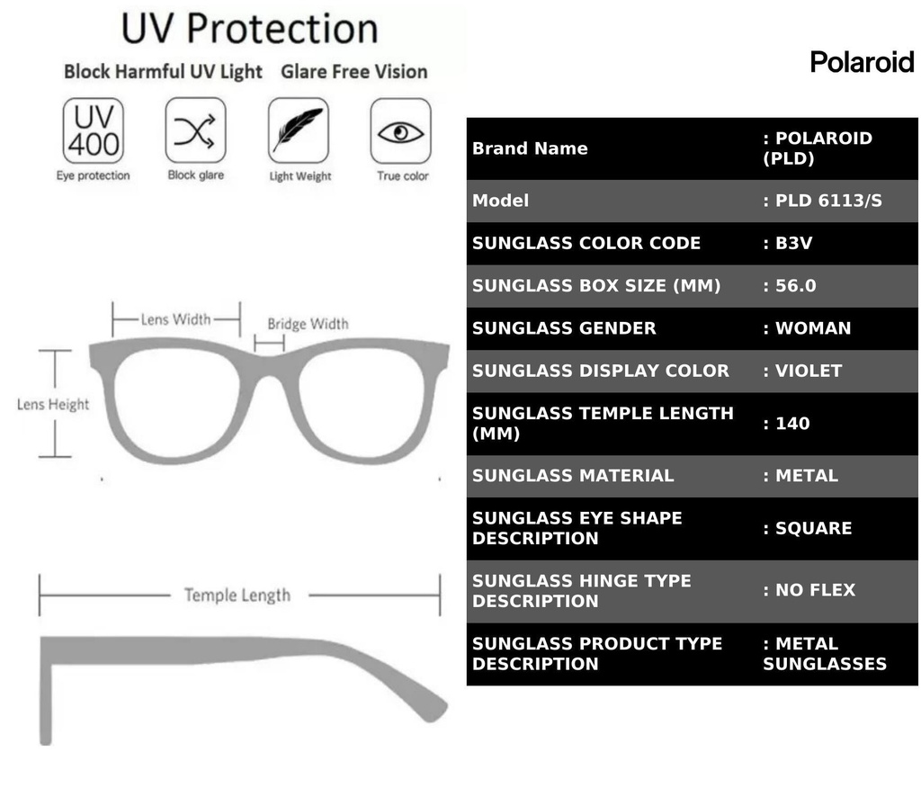 Specifications for POLAROID (PLD) Sunglasses PLD 6113/S